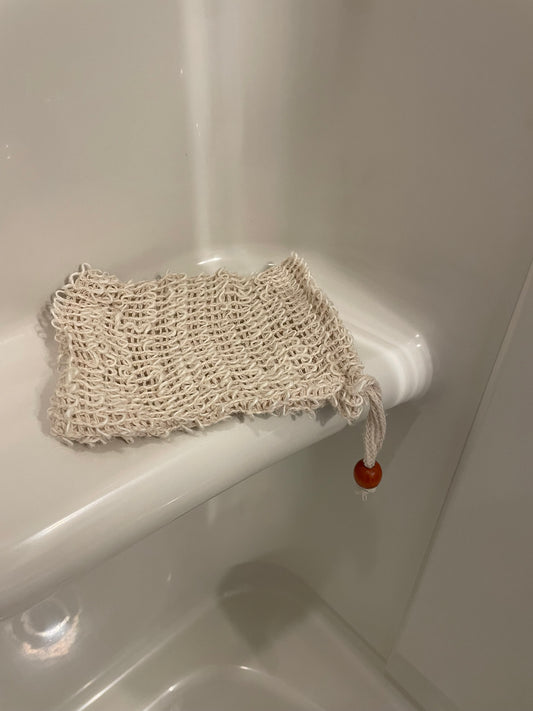 The sisal bag goes perfectly with the soaps when used for bathing. It works the soap into a nice lather and gently exfoliates at the same time.