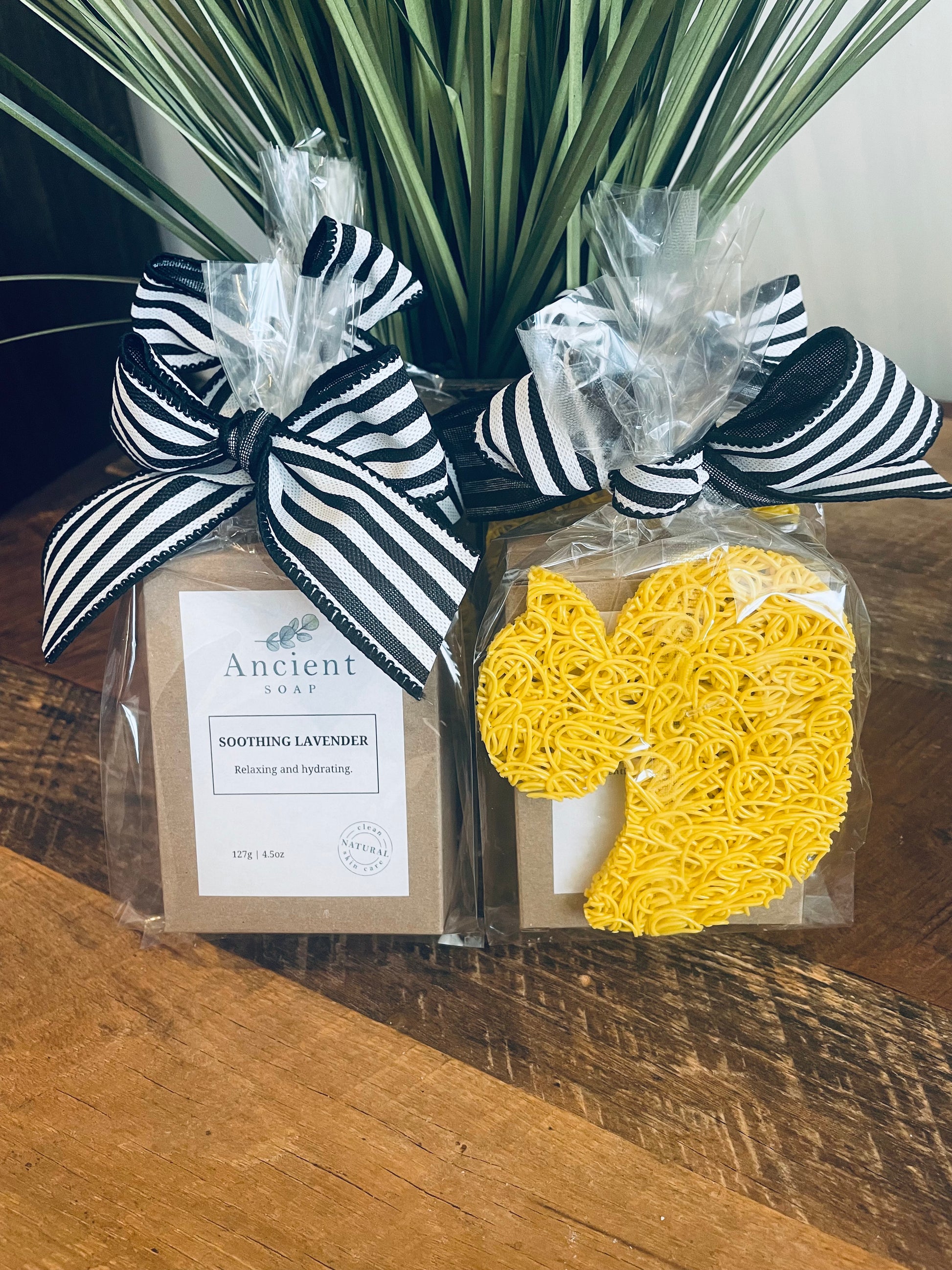 This super fun gift bag comes with your choice of soap and soap saver. They are great to keep on hand for that last minute gift or we can mail the gift bag for you.