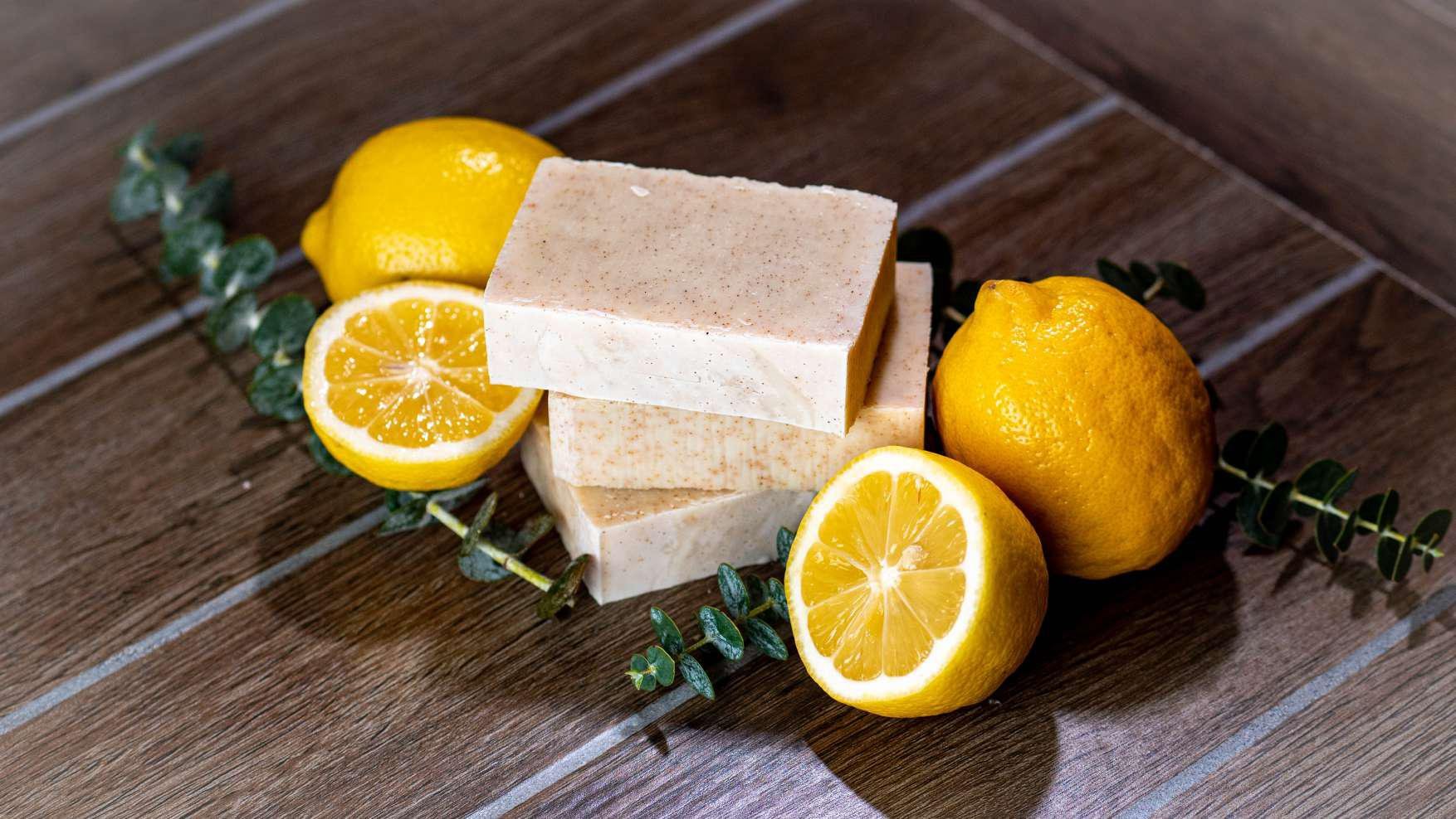 With a lovely blend of olive, coconut, palm, and flaxseed oils, this bar has a rich lather, cleanses the skin and is very high in vitamin E. The essential oil blend of lemon and eucalyptus takes you to a beautiful, warm, sunny day that is sure to make you smile.