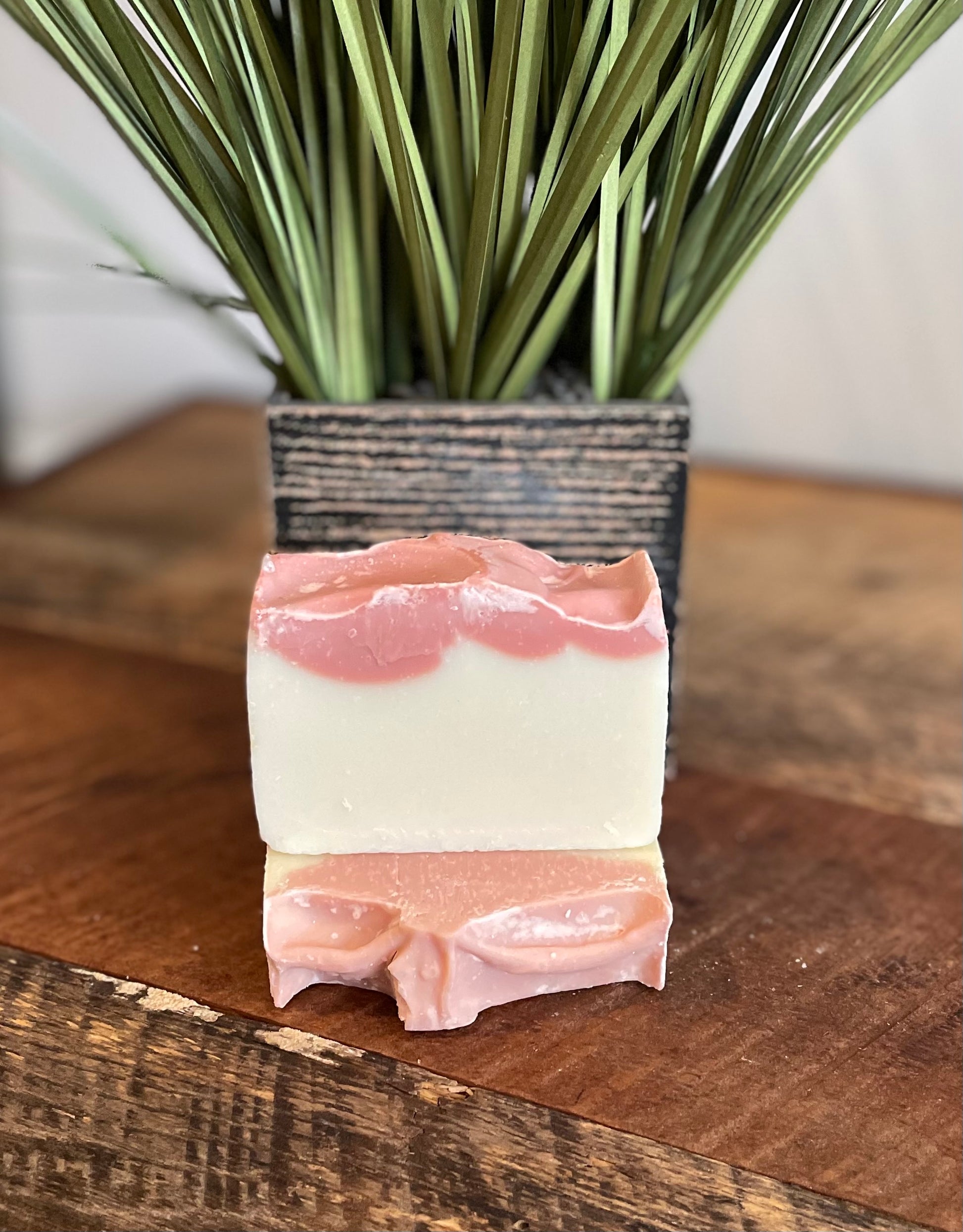 This bar smells like a bouquet of fresh wildflowers! It has a lovely essential oil blend of Bergamot, Wild Orange, Lavender, and Peppermint.